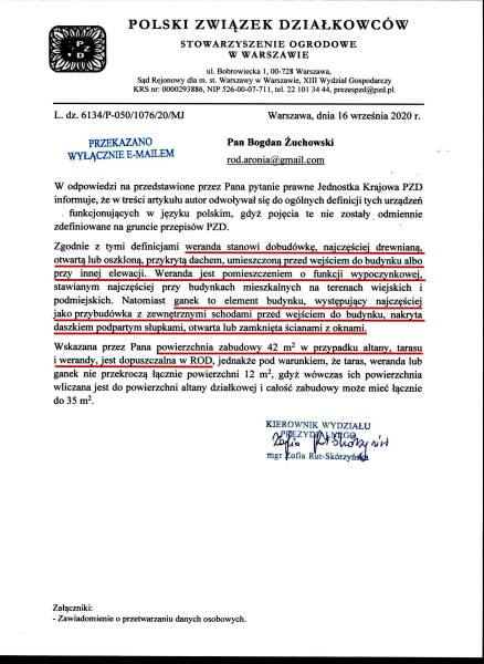 Wyjaśnienie KR PZD w sprawie tarasu, werandy i ganku w związku z mylną informacją zamieszczoną na stronie internetowej PZD